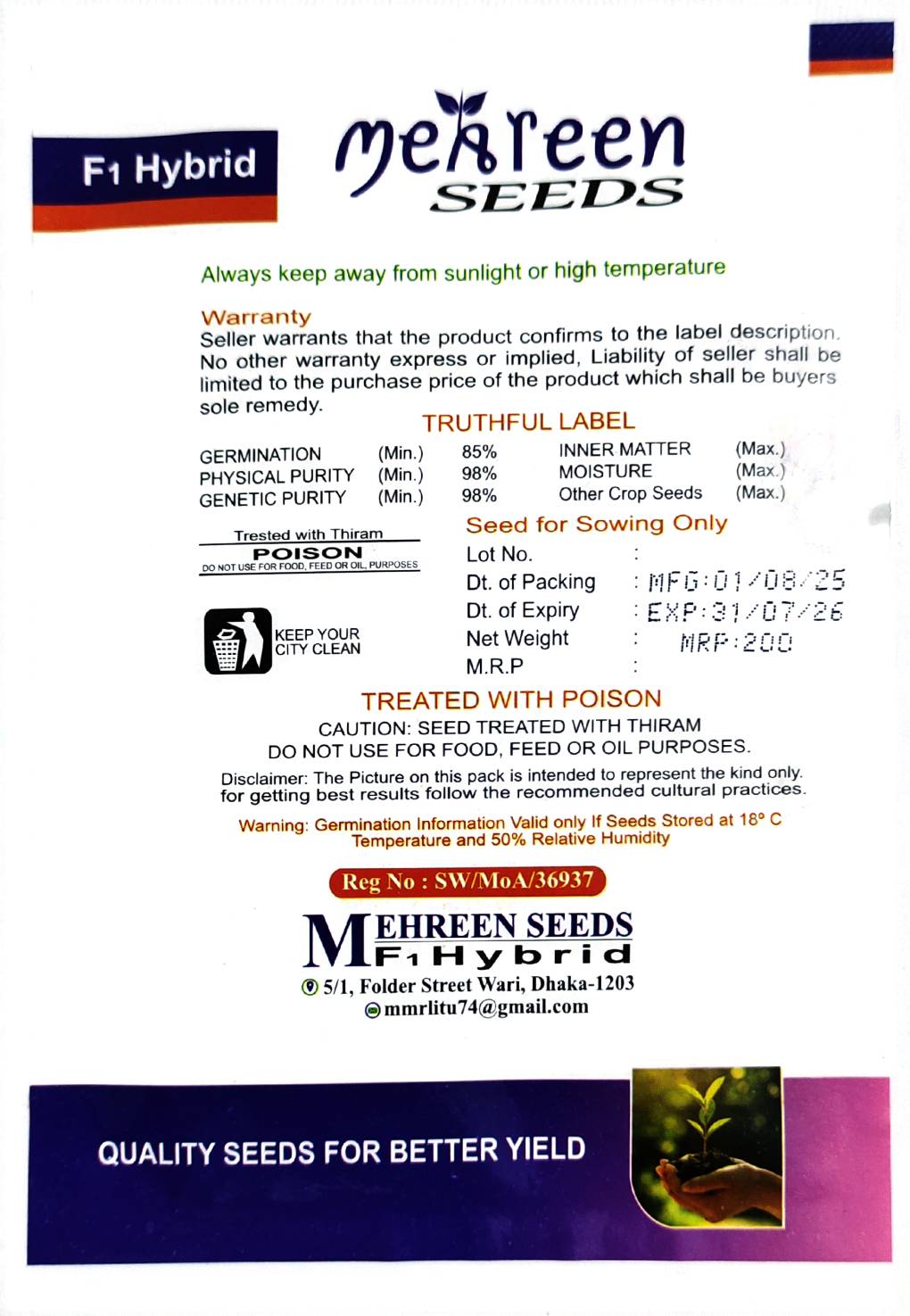 📌 এই বীজগুলো Thiram দিয়ে প্রক্রিয়াজাত, তাই খাবার হিসেবে ব্যবহারের উপযোগী নয় — শুধুমাত্র ফুল উৎপাদনের জন্য।